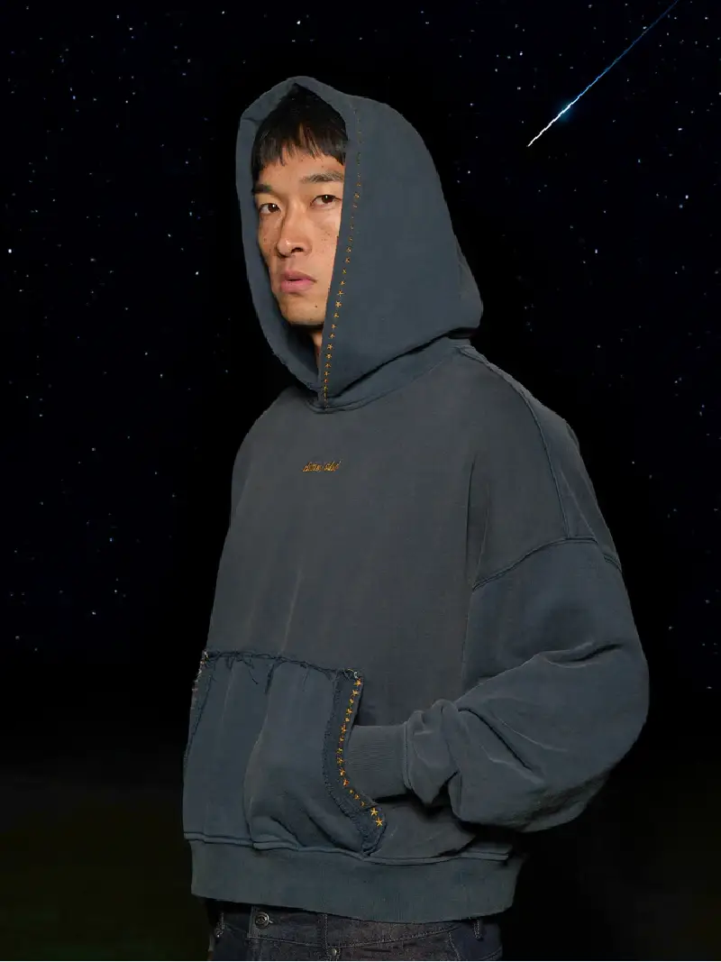 Embroidered Stars Hoodie Storm Blue