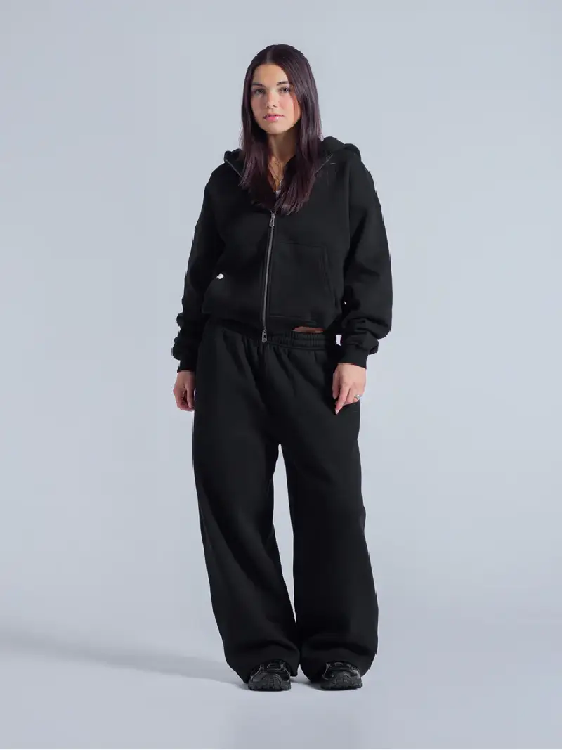 Signature Basic Double Zip Hoodie Black